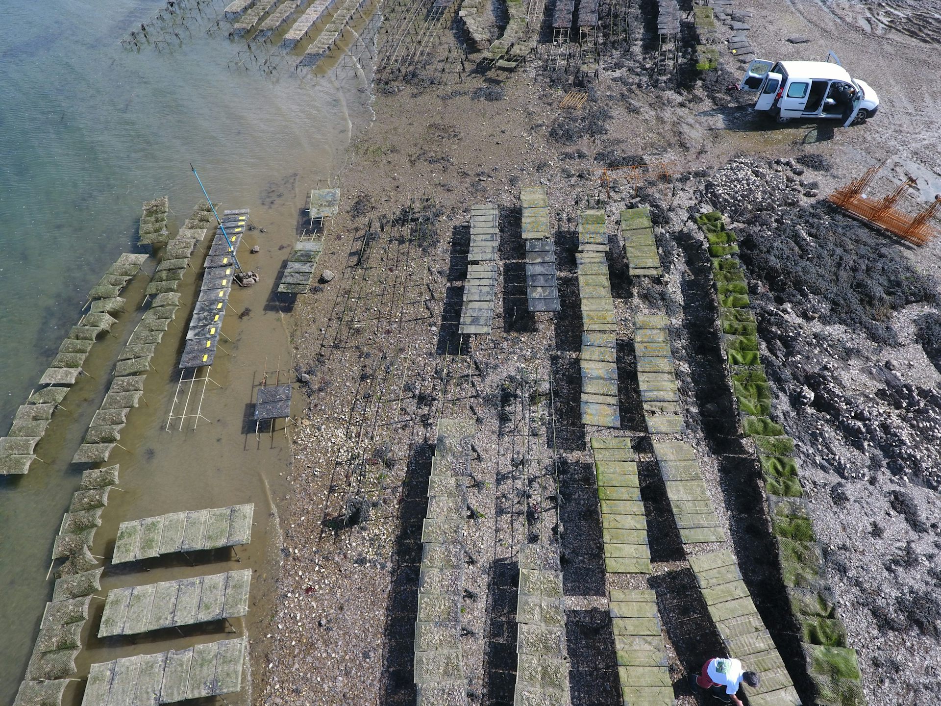 Les ulves et les fucus coexistent naturellement avec les huîtres tandis que les cordes de Solier se trouvent à proximité dans les zones plus profondes.